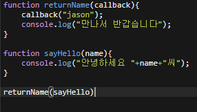 간단하게 동작을 살펴보면 returnName을 보면 파라미터에 callback이라는 함수가 선언되어있다.
