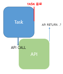 어떠한 스레드에서 Task를 실행할 때 Task가 API를 호출한 뒤 API로부터 응답이 끝나면 Task는 응답 받은 값으로 해야 할 연산을 마친 뒤 종료하게 될 것이다.